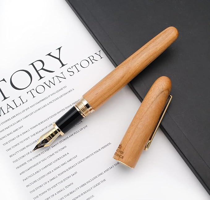 JINHAO 9036 Natural Wood Fountain Pen Handmade Ink Pen (Medium Nib 0.7mm, Cherry Wood)