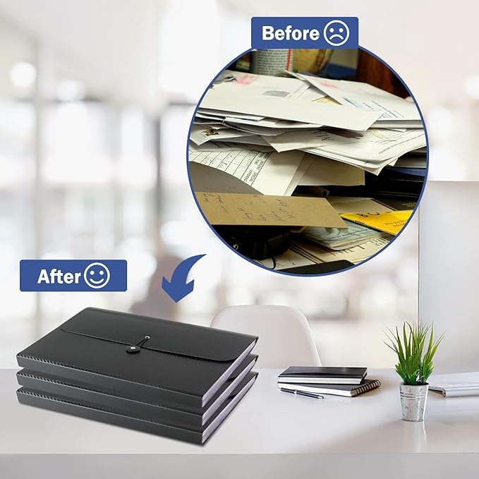 - PREMIUM QUALITY: Our accordian file organizer is made of high quality material, PVC-free, no odor, sturdy and tear-resistant, not easy to break and deform. The file folder organizer is waterproof to keep your important documents clean. Simple and stylish appearance is for better visual sense. Ideal for long term use