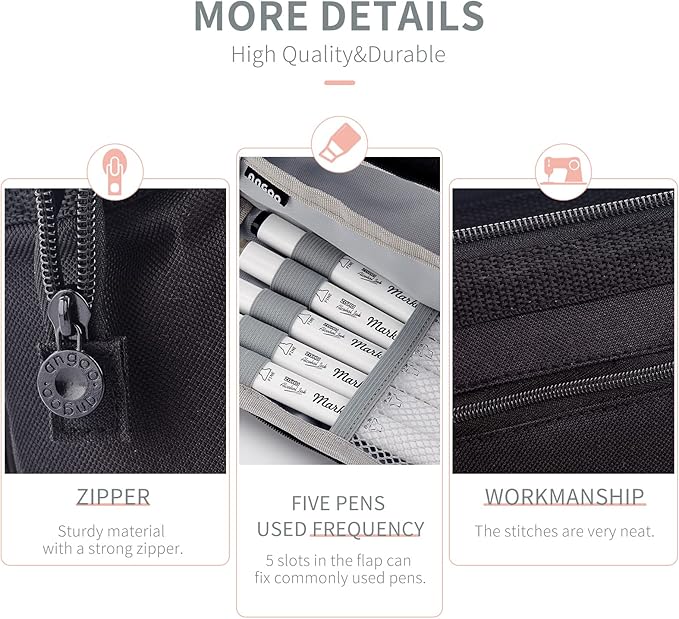 - Unique Design: Open pencil case from the top or front flap with 5 slots to organize pens and other commonly used items.