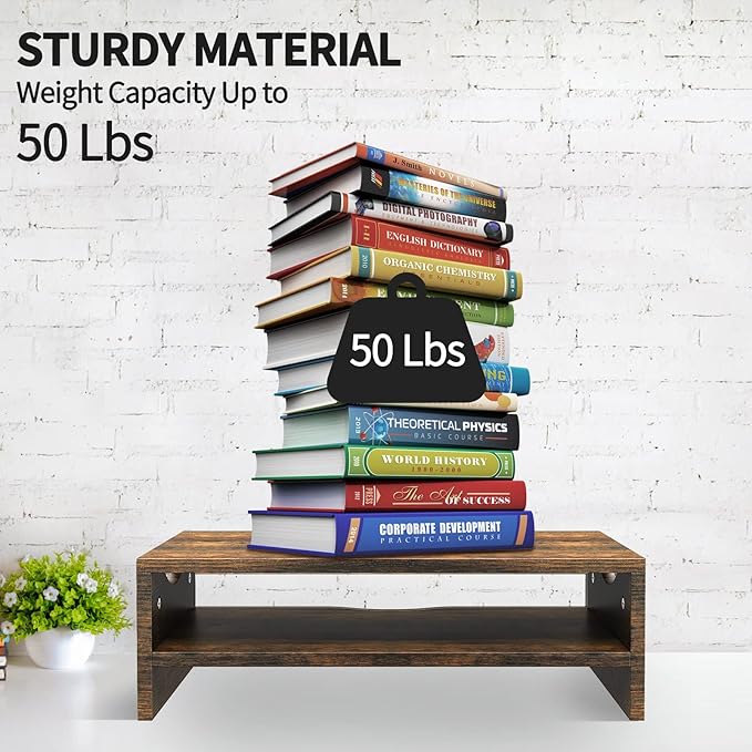 - Save Your Space: Get rid of the messy desks! 2-Tier monitor risers provide more storage space to keep your workstation organized and tidy. It can store many office supplies such as books, notebooks, earphones, power banks, paper, etc.