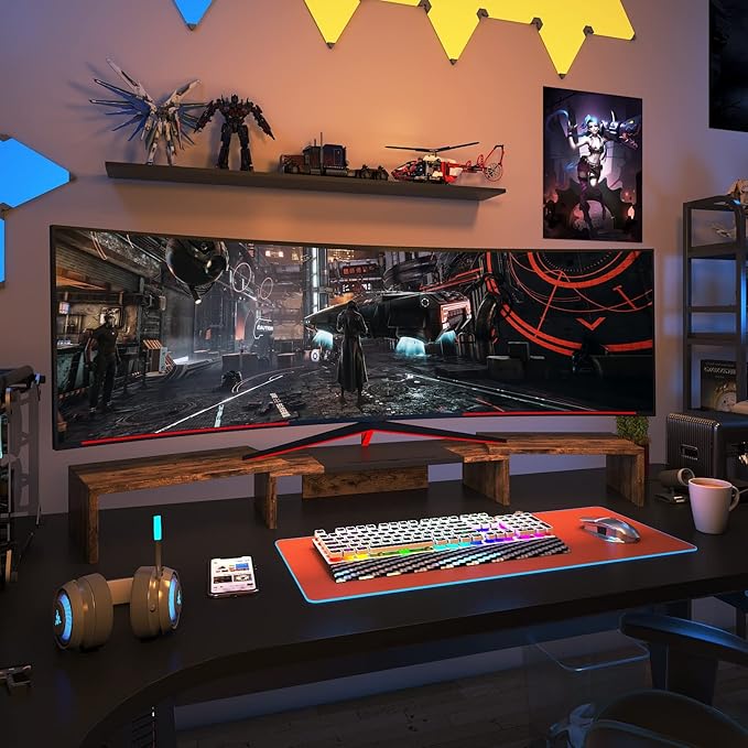 WESTREE Triple Dual Monitor Stand Riser, Extra Long Monitor Stand for 1~2~3 Monitors, Monitor Stand with Length and Angle Adjustable, 3 Shelf Desktop Storage Riser for Monitor Computer Screen Laptop