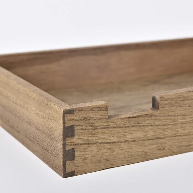 - [WITH NAME CARD HOLDER]: The office supplies holder trays comes with a delicate bronzed card holder,which is perfect for home decor on desks, tables, or counter tops๏ผstoring various small objects as desktop mail tray or desk mail organizer.The metal tag holder makes this cute wooden tray more practical and adds a touch of vintage.