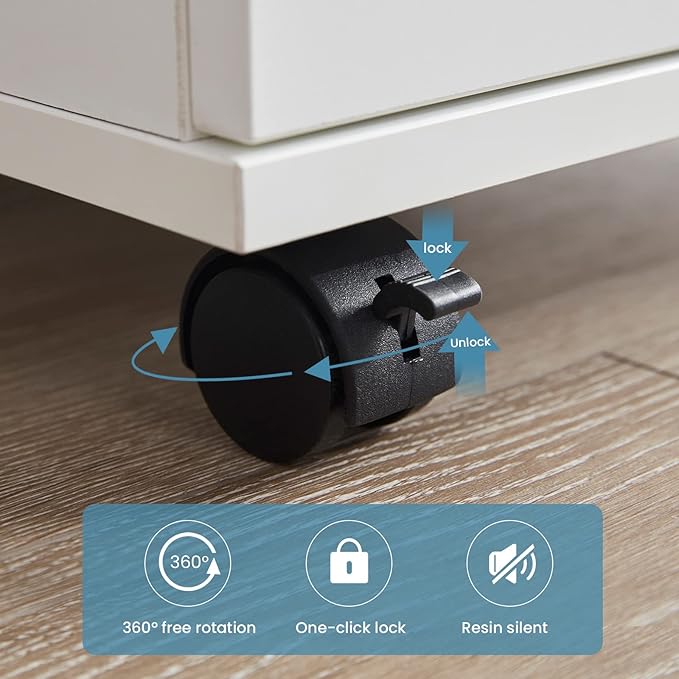 - Stable Movement: Equipped with 4 sturdy wheels, 2 of which can be locked for stability, this filing cabinet can be stable or move freely and safely according to your needs.