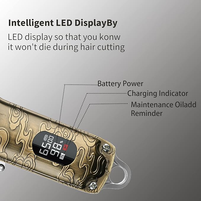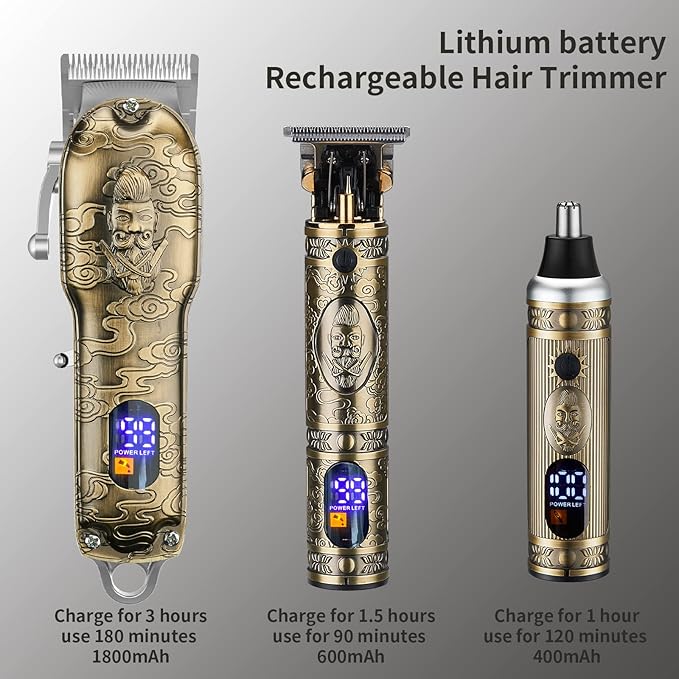 - INCORPORATED LCD SCREEN - Built-in LCD digital display, display remaining power, charging status and lubrication reminder indicator. The hair clipper can be used for 180 minutes after charging for 3 hours. The trimmer can be used for 120 minutes after 1 hours of built-in charging. 2 in 1 nose trimmer and mustache trimmingοΌ90 minutes after 1.5 hours of built-in charging.