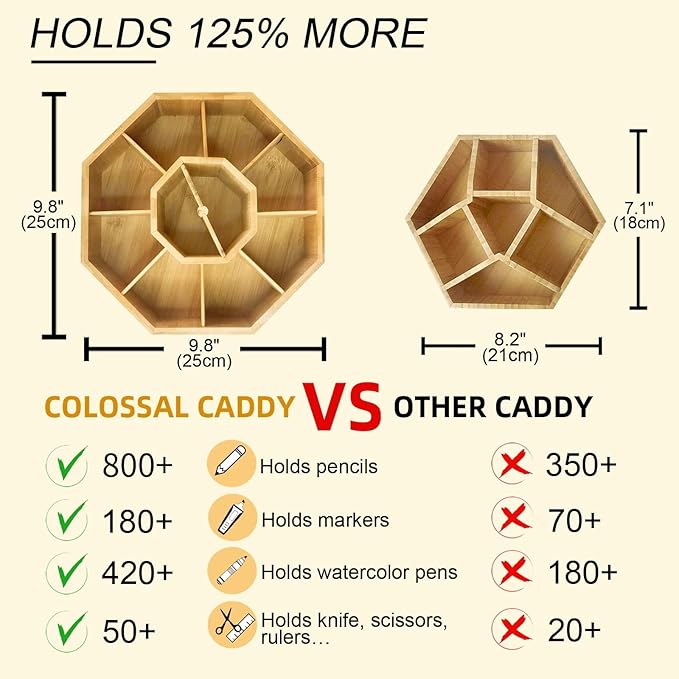 - DOUBLE CAPACITY - Our 10”x 10” extra large organizer holds 800+ pencils while others only holds 350. If you have more than 80 markers, go ahead and get one from us, or you need to pay twice for the small ones and they will take too much space of your desk because one small pen holder can't hold 80 markers. You can put all your art supplies on this XXL size storage desktop organizer. Also a good choice to hold your makeup and brush.