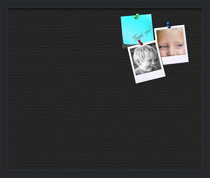 PinPix 24x20 Inch Cork Bulletin Board. This Decorative Framed Pin Board Comes with Solid Black Design and a Satin Black Frame. Ideal for Home Office Decor or Message Board (PinPix-622)