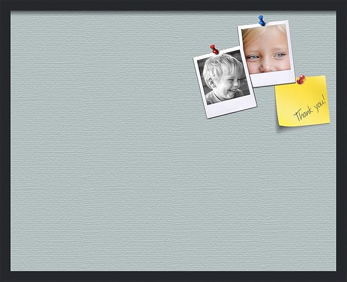 PinPix 30x24 Inch Cork Bulletin Board. This Decorative Framed Pin Board Comes with Soft Blue Design and a Satin Black Frame. Ideal for Home Office Decor or Message Board (PinPix-1814)
