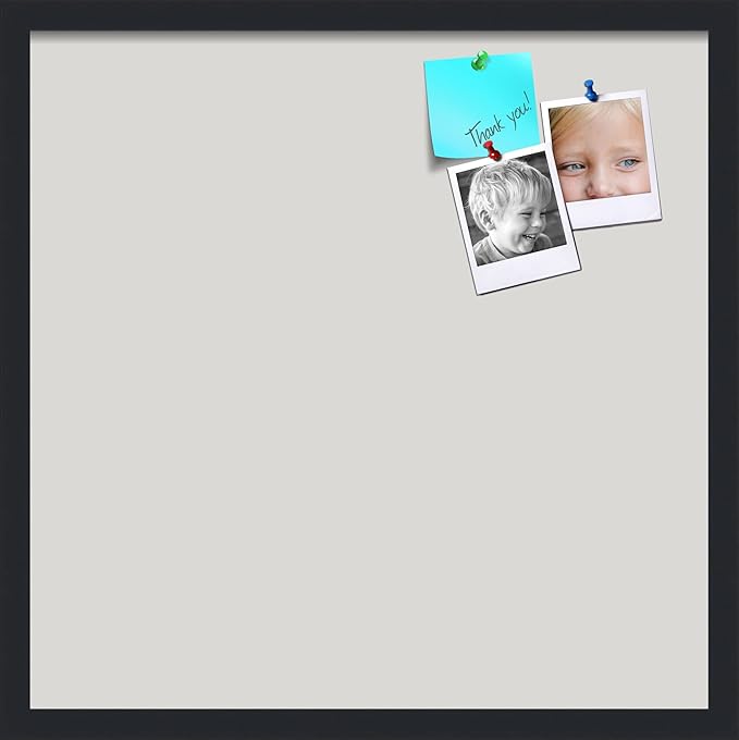 PinPix 22x22 Inch Cork Bulletin Board. This Decorative Framed Pin Board Comes with Light Stone Design and a Satin Black Frame. Ideal for Home Office Decor or Message Board (PinPix-1809)