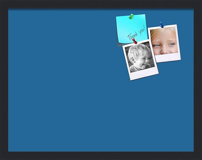 PinPix 22x17 Inch Cork Bulletin Board. This Decorative Framed Pin Board Comes with Navy Pastel Design and a Satin Black Frame. Ideal for Home Office Decor or Message Board (PinPix-1811)