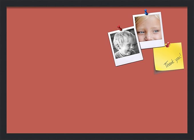 PinPix 27x19 Inch Cork Bulletin Board. This Decorative Framed Pin Board Comes with Crimson Pastel Design and a Satin Black Frame. Ideal for Home Office Decor or Message Board (PinPix-1807)