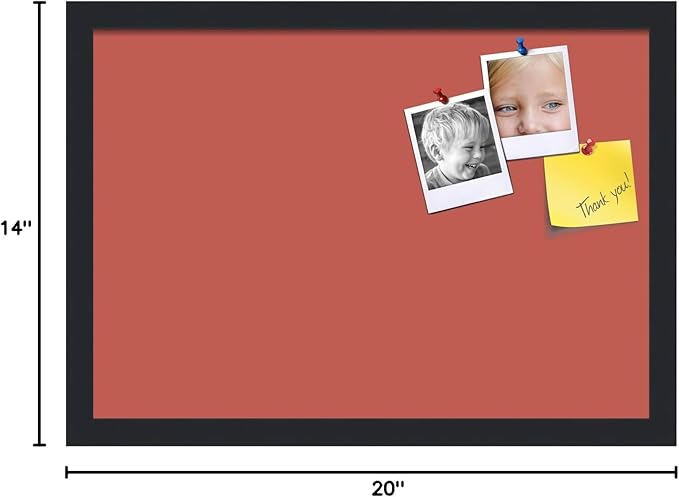 PinPix 20x14 Inch Cork Bulletin Board. This Decorative Framed Pin Board Comes with Crimson Pastel Design and a Satin Black Frame. Ideal for Home Office Decor or Message Board (PinPix-1807)
