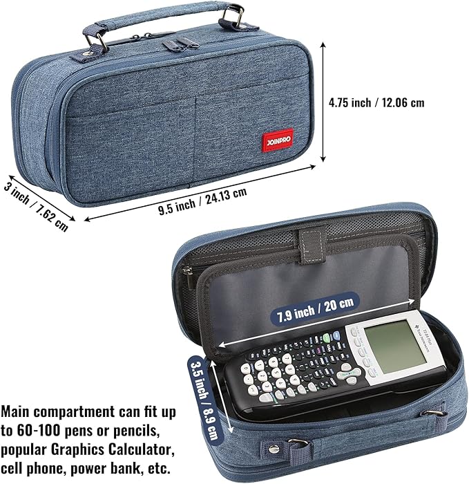 - Unique Designs - Fashionable colors and appearance, with three-dimensional and layered structure design. Two double-zipper, interior mesh pockets, and different compartments are designed for this pencil bag, it can hold pretty much everything a student needs. With rivet reinforcement handle strap design, not easy to break; and thickened handle strap for comfortable use and easy to carry.