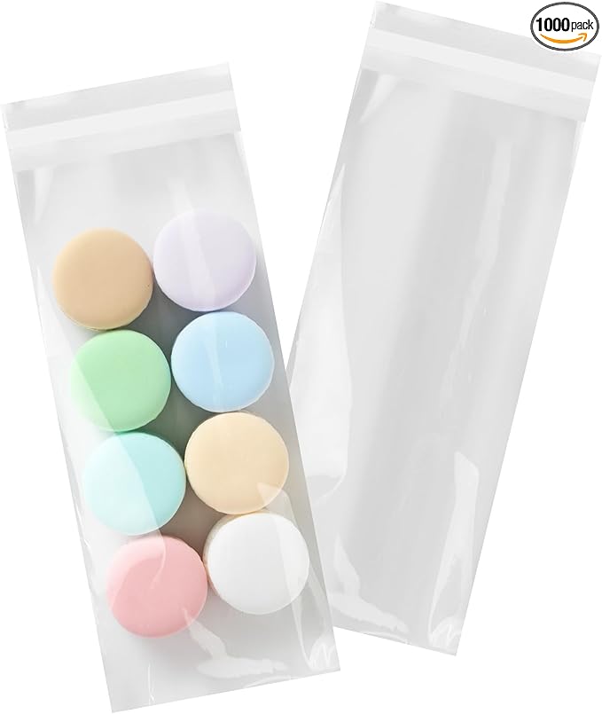 - [SPECIFICATION]: 200 PCS - 4" x 9"(Excludes Glue Flap) Resealable Cellophane Style Bags - Self Sealing. 1.4 Mil Thickness.