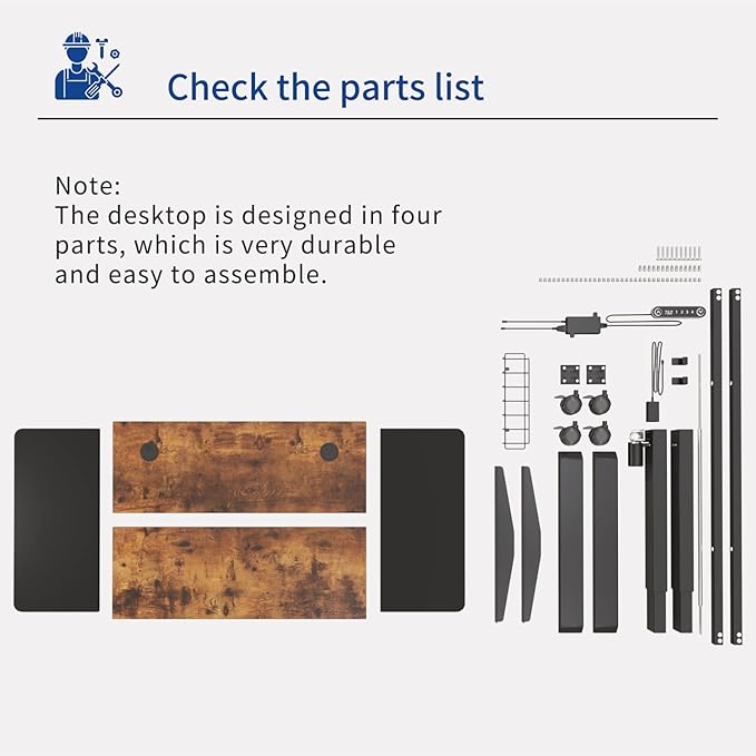 Electric Adjustable Height Standing Desk, 55 x 24 inches Sit - Stand Desk for Work or Home Office 4 Preset Heights Easy to Set, Rustic Brown + Black Splice Board/Black Frame
