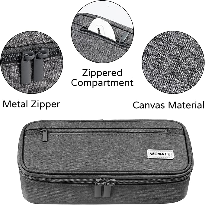 - Premium Canvas: WEMATE large-capacity pencil holder is made of 100% high-quality canvas, is strong and durable. Fine workmanship and provide you with dust-proof, not easy to damage pencil pouch.well-crafted and subjected to strict quality inspection, that not only looks great but will last for years to come