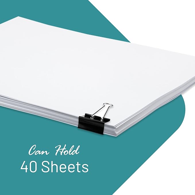 - Includes 60 small binder clips. ¾” –holds 40 sheets of paper.
