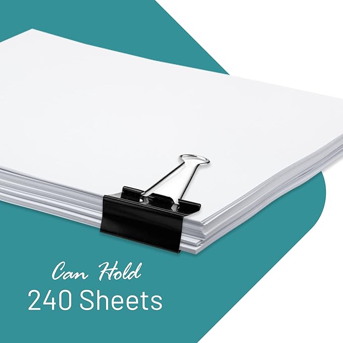 - Includes 24 large binder clips. 2” – holds 240 sheets of paper.