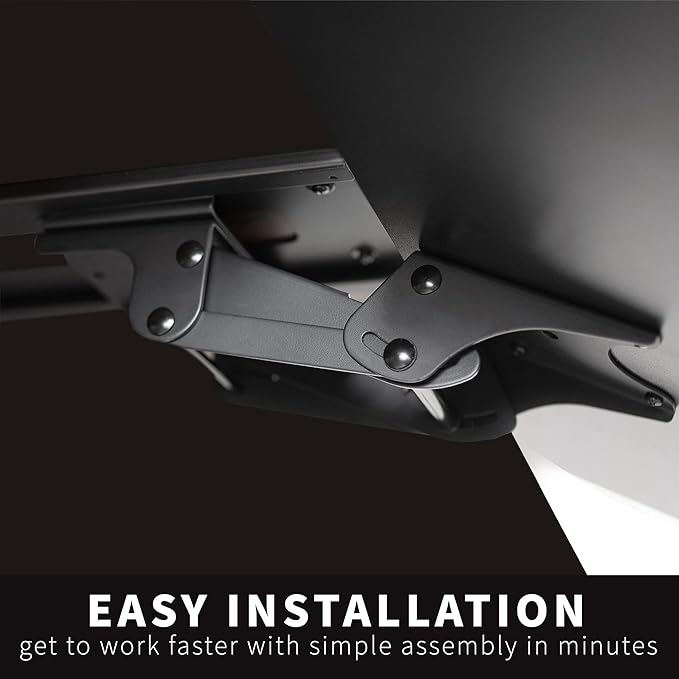 - Ergonomic Keyboard and Mouse Tray - Installs underneath a standard desk for comfortable typing angles. Please Note: If installing to a height adjustable desk, you will need a spacer bracket for the track to fit over the frame crossbar. VIVO offers adapter MOUNT-SPACER01 (not included) for this purpose.