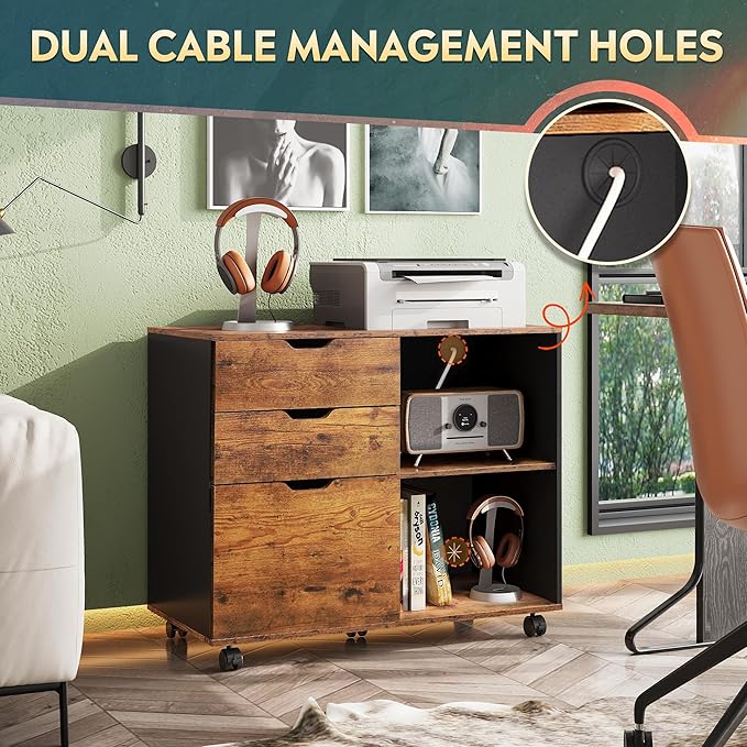 - MULTIFUNCTIONAL & STYLISH: This filing cabinet with open storage spaces, file drawers and storage cabinet is designed to keep the office machines, paper, files and suppliers organized. It can be fixed beside or under desk. The sleek and modern finish is an easy fit for office or home study.