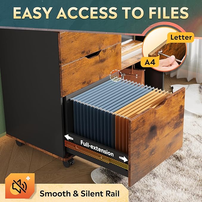 - 3 DRAWERS & LARGE OPEN STORAGE: 2 top small drawers provide plenty of storage space for small items. Bottom drawer keeps hanging letter, A4 size files organized and extends fully for easy access.