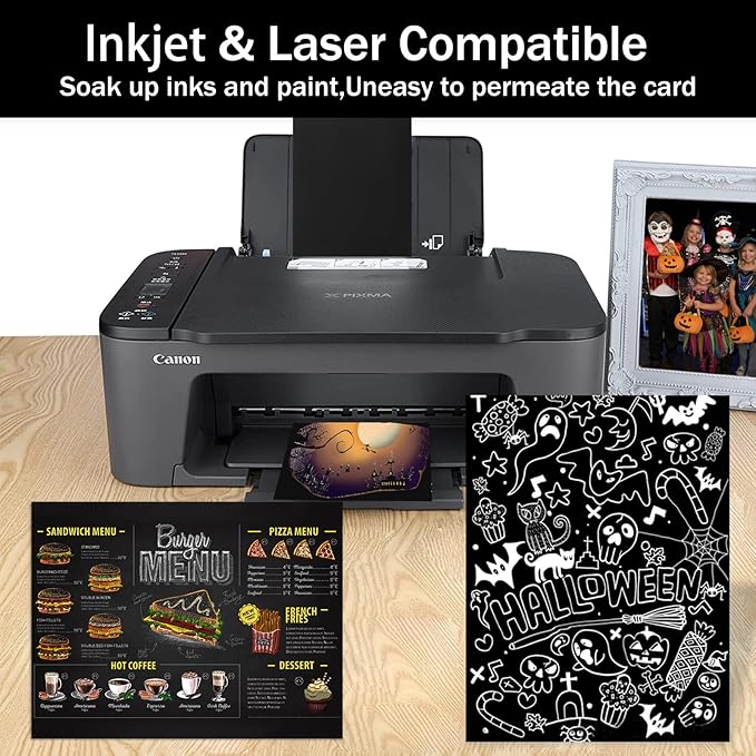 - Printer Friendly: Sturdy and versatile, our double sided black stock paper is compatible with most types of inkjet, laser printers and photocopy machines; Please check the maximum thickness specification of your printer before printing