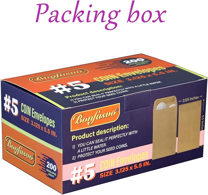 - 【Package Includes】- It contains 200 pack self-adhesive #5 Kraft coin envelopes, each size is 3.125''x 5.5''.