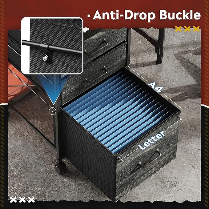 - Easy to Move: Rolling on 4 wheels, this mobile file cabinet can fix or move around your home office freely. Built-in brakes on front 2 casters to keep it in position and add stability. Unique fabric drawer design makes it only weigh 22 lbs. and light to move.