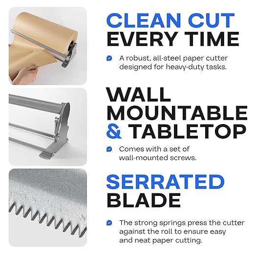- 【WALL MOUNTABLE & TABLETOP】 IDL Packaging kraft paper holder can be wall-mounted or set on a tabletop. Comes with a set of wall-mounted screws. It is easy to install on any surface and load with paper rolls in seconds. Increases the speed of packaging, saving your time and money