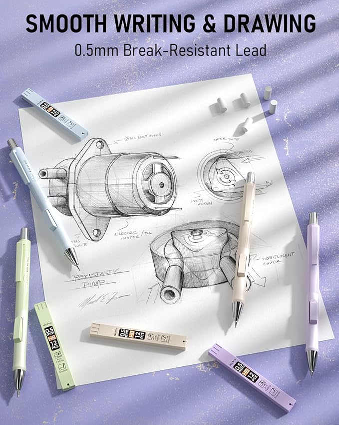 - Portability: Nicpro pastel mechanical pencil set with a case, compact and lightweight construction, it could be easily carried around in a pocket, pencil case, or bag. It's convenient for students, professionals, or anyone who needs a reliable writing instrument on the go
