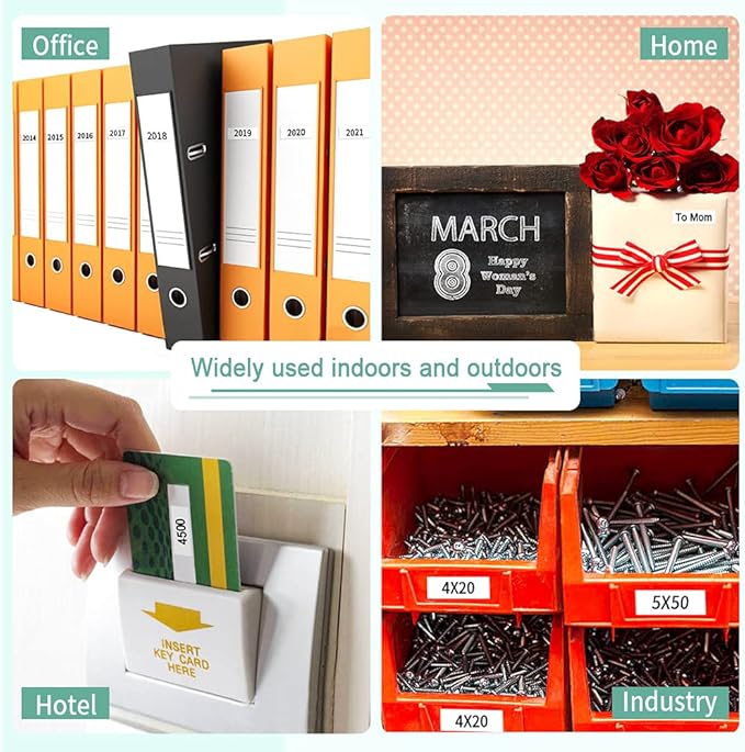 - Applications: The tze tz tape 9mm 3/8" laminated tape is suitable for indoor or outdoor use. Such as home, office, school, industry, warehouse, chemistry laboratory, hotel, and hospital. It is used for labeling kitchen seasonings, files, folders, shelves, and books