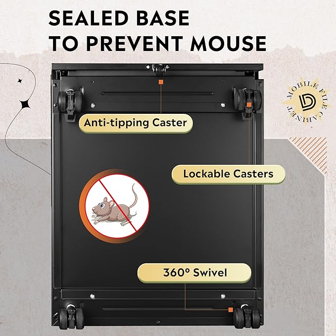 - Add More Mobility: Rolling file cabinet design with two front casters with braking function and one center caster to prevent tipping.