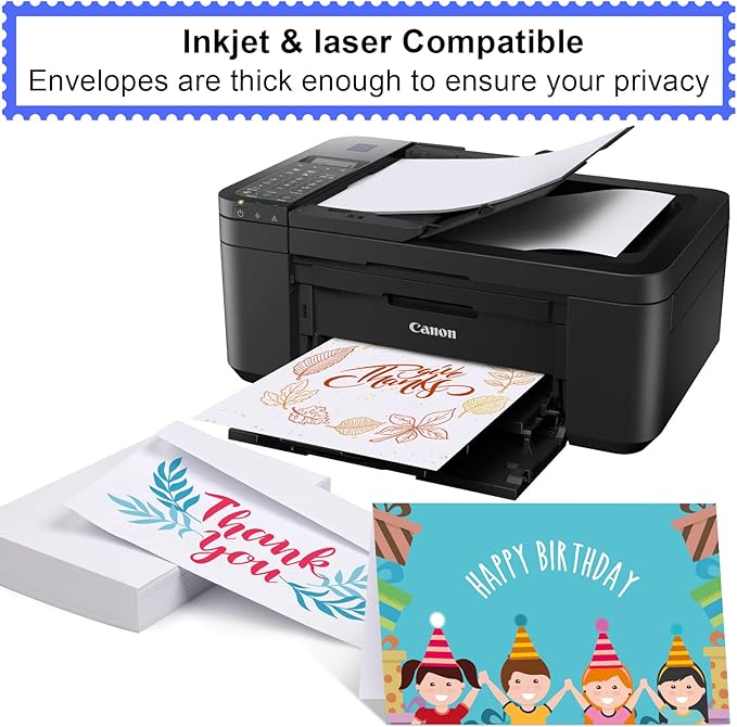 - Print custom: These white Blank Card inside and out. These envelopes are suitable for printing. You can solve these problems with a laser or an inkjet printer. Blank cards and envelopes can be printed on digital and offset commercial printers. There is no need to worry about smudging or paper jamming, as these Blank cards and envelopes are compatible with most printer models.