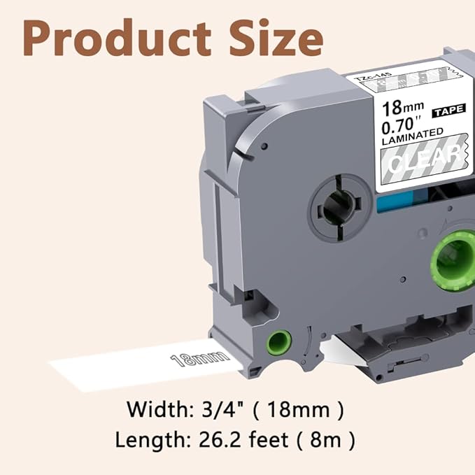 - Product features - The replacement compatible for Brother p-touch label tape 18mm tze-145 is split back, water resistant, fading resistant, abrasion resistant, temperature resistant, strong adhesive. The ptouch label tape 18mm tze-145 white on clear tape is suitable for indoor and outdoor use