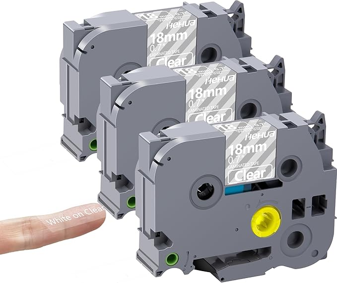 Hehua 18mm 0.7 Laminated Clear Tape Compatible for Brother P-Touch TZe-145 TZe145 TZ-145 TZ145 TZe TZ Label Tape for Ptouch PT D400 D600 P710bt, 3/4'' x 26.2ft White on Clear, 3 Pack
