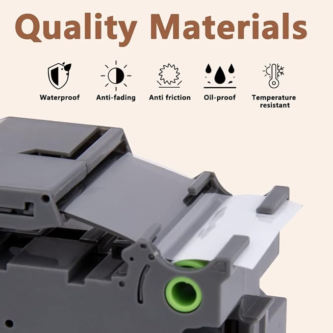 - Wide application: Compatible for Brother P-touch TZe 365 label tape is ideal to print clear, good-looking and durable labels. These labels are great for shelving, kitchen use, cabinets, file folders, USB sticks, food containers, storage boxes, personal possessions, children's school equipment with it's superior adhesive