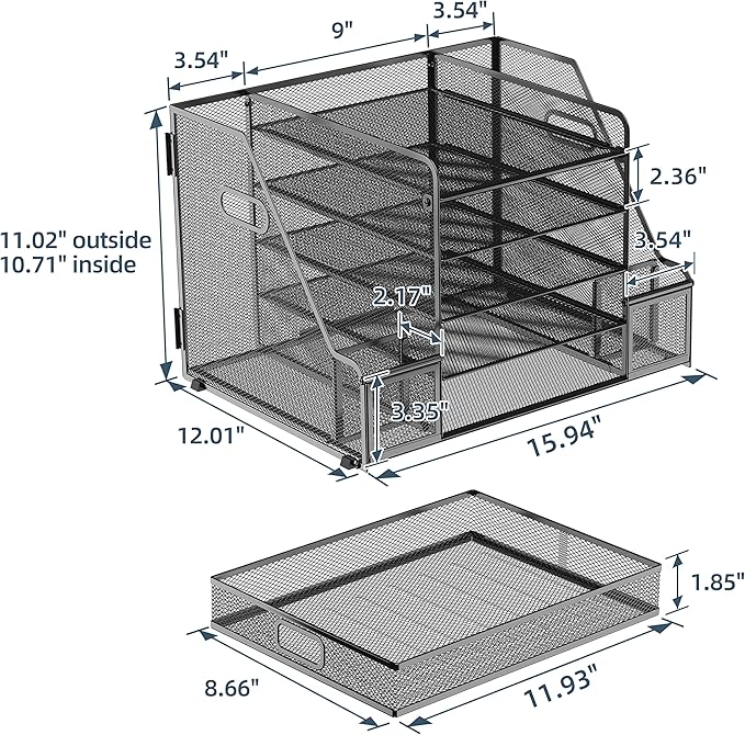 - [Sturdy and Durable] Mesh structure office organization, the whole frame is composed of metal mesh, which is strong and durable, not easily deformed or damaged. (USPTO Patent Pending, USPTO Patent Application Number: 29855039)