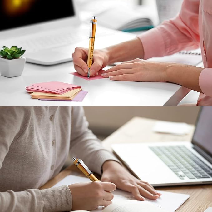 50 Pack Bible Verse Bamboo Retractable Ballpoint Pens Christian Inspirational Bible Verse Ballpoint with Black Ink Pen for Journal Writing Office Supplies Religious Gifts for Men Women(Classic Color)