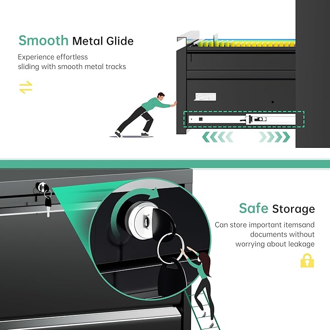 - 20-INCH DEPTH CAN HOLD MORE FILES -- Compared with normal 17”deep small metal file cabinets on the market, we upgraded the depth to 20”, 17.65% larger than typical mobile file cabinets, Can hold more kindly of files,documents and other office supplies. More functional and more cost-effective than 17-inch wide black filing cabinets.