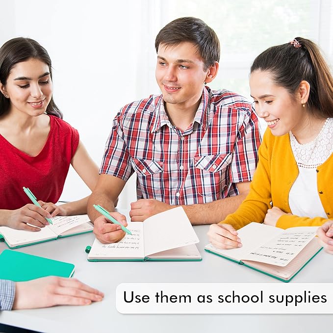 - Feela 3 Pack Classic Ruled Notebooks contains 3 aqua ruled sturdy cover notebooks and 3 Black Retractable Pens. Each of the notebooks measures 8.3” x 5.1”, which is perfect to carry and easily held by young girls and boys. These black cute pens are customized to be placed in the pen holder, which is pretty convenient.