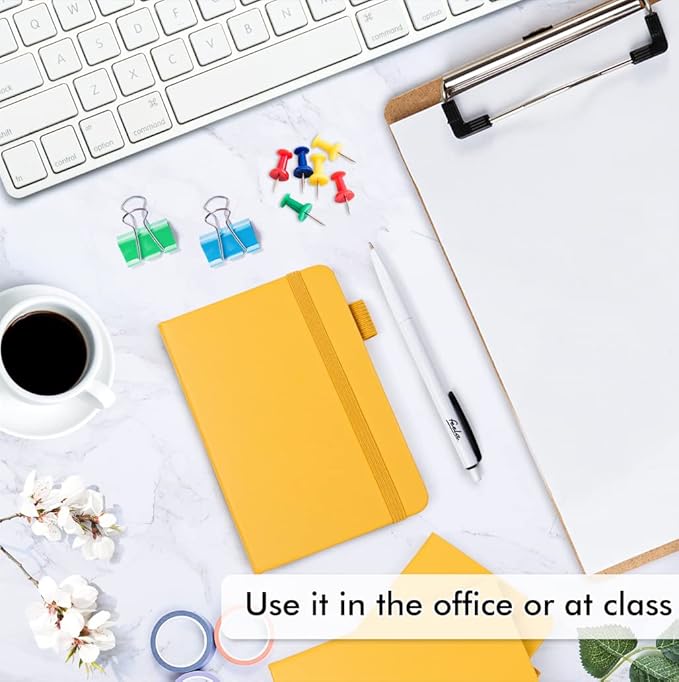 feela 15 Pack Pocket Small Notebooks Bulk, Mini Cute Notepads Hardcover College Ruled Lined Journals with Pen Holder for School Business Memos, with 15 Black Pens, 3.5”x 5.5”, A6, Yellow