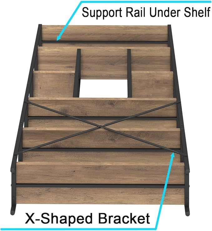 - Reliable Safety Construction with Stability and Strength: Crafted of heavy duty metal frames, wall anchor kit, X-shaped bracket on the back and 4 firmed crossbars under the shelves, the simple tall etagere bookcase boasts robust sturdiness and increase the total weight capacity up to 800 lbs. Meanwhile, Adjustable levelers in the bottom prevent wobbling and scratching from uneven floor.