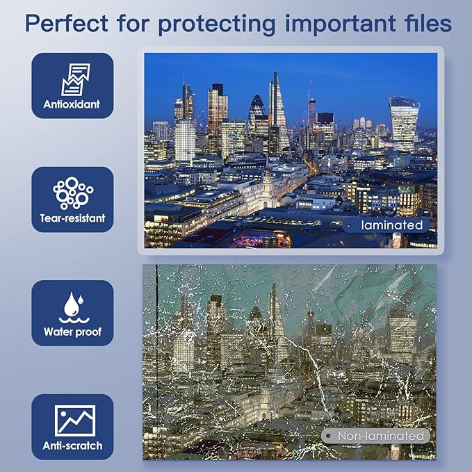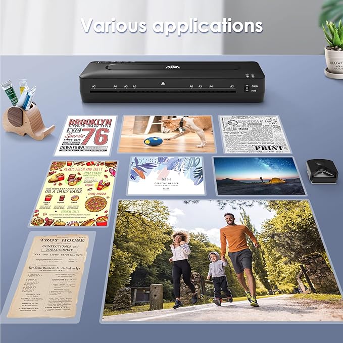 - Four sizes of 50 pack laminating sheets(3mil): A3×10PCS (11''×17''), A4×20PCS (9''×11.5''), A5×15PCS (8.5''×6''), A6×5PCS (5.9''×4.3 '').