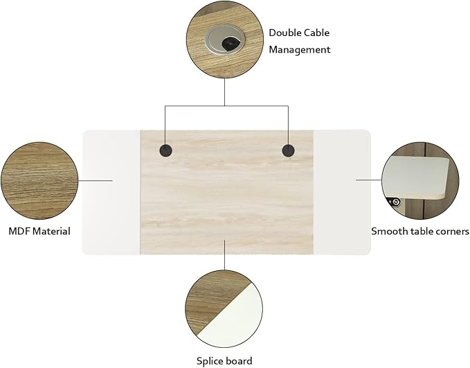 - Sleek design: Functional and modern, the deskβs sleek and contemporary design is a suitable addition for any living space. The particle top is splice board.