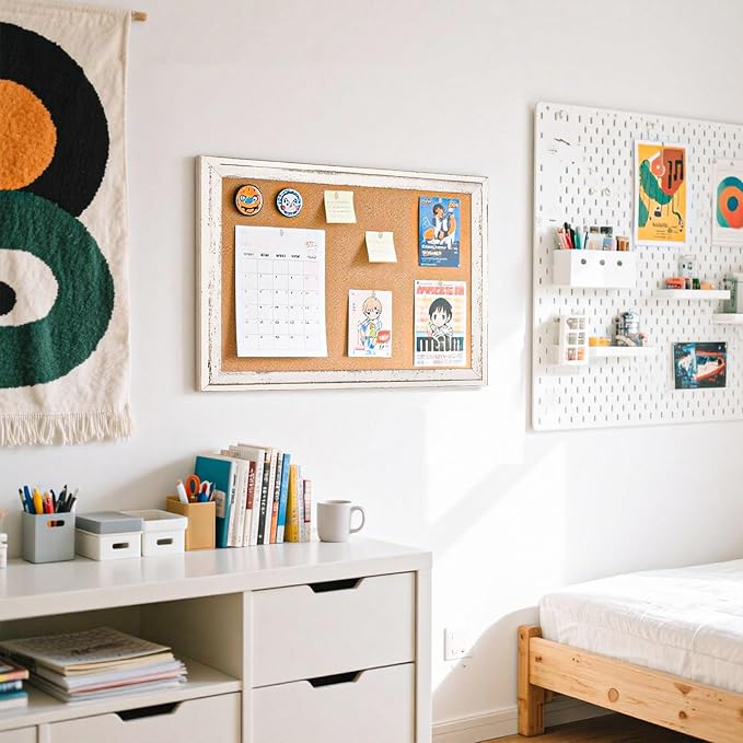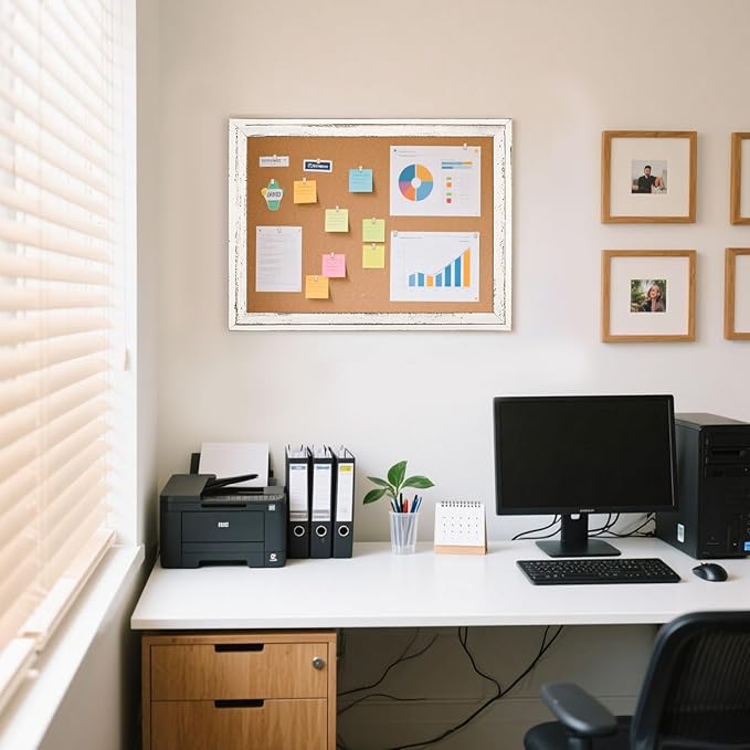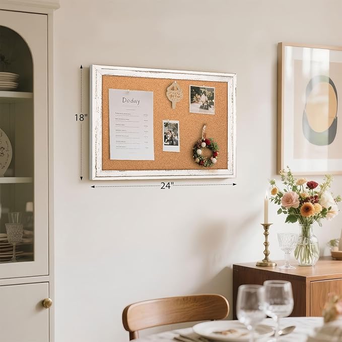 - 【Well-made Wooden Frame】Our white cork board features a precision-crafted frame, which is sturdy and durable. And the rustic white frame adds a touch of elegance to your space. The wooden frame has smooth edges to protect your hands from scratches