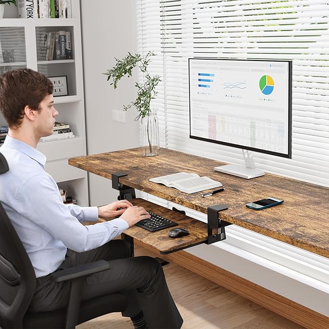 - ✅ MAXIMIZE YOUR DESK SPACE – Free up your desktop by placing your keyboard and mouse on this smooth slide-out tray. The ergonomic position helps reduce wrist strain while keeping your workspace tidy—perfect for offices, remote workstations, and gaming setups