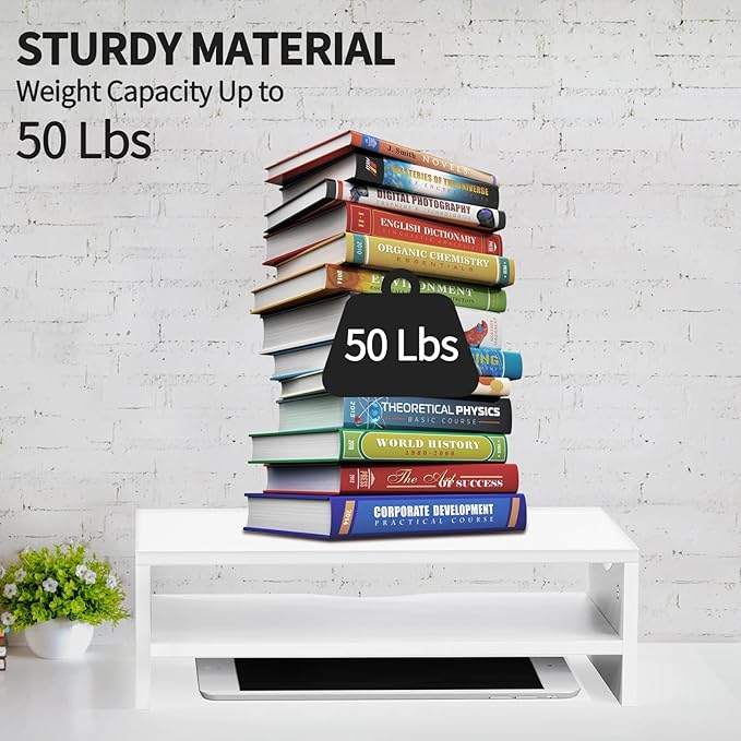 - Durable Material: The computer stands for desk is made of high-grade MDF material for long-lasting usage time. The durable thick board platform can meet your daily requirement to hold most office devices. The maximum load capacity is 44lbs.
