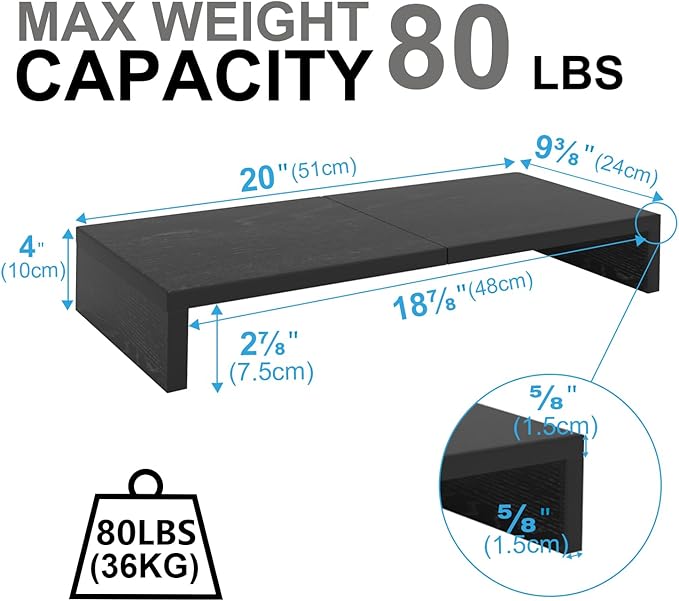- 【Sturdy and High Quality】It can hold 80Ibs, strong and sturdy. Made of high quality MDF wood board. Minimal, modern design that fits in easily with most home office decor.
