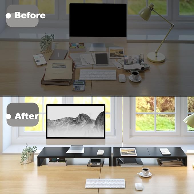TEAMIX 2 Pack Monitor Stand Riser-20 inch, Black Desktop Stand for PC/TV/Laptop/Printer, Keyboard Shelf Organizer Wood Monitor Riser with Storage