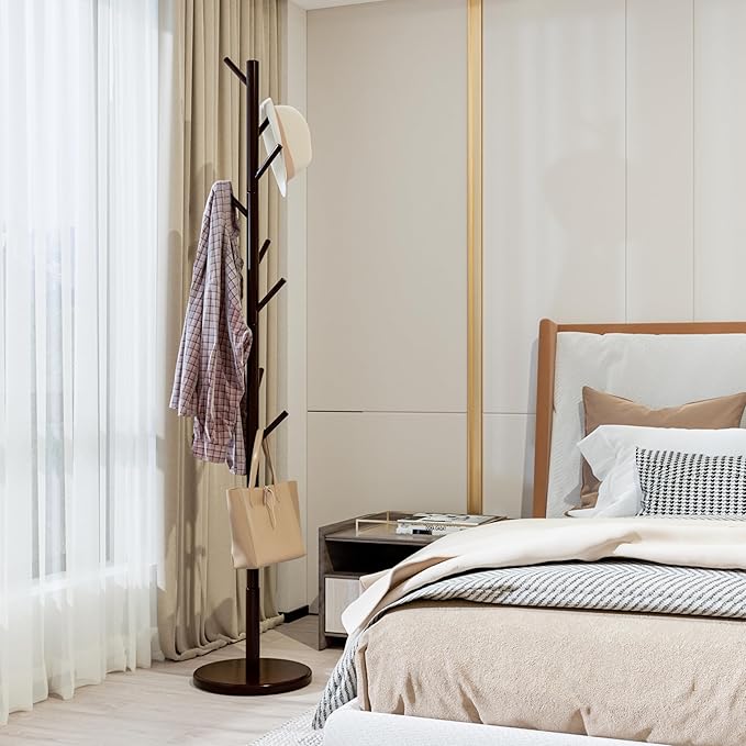 - 【QUALITY MATERIALS】: Coat tree is made of premium bamboo and wood, stable, durable, and not easily collapsing. The elegant and classic design can be perfectly integrated into various home decoration styles