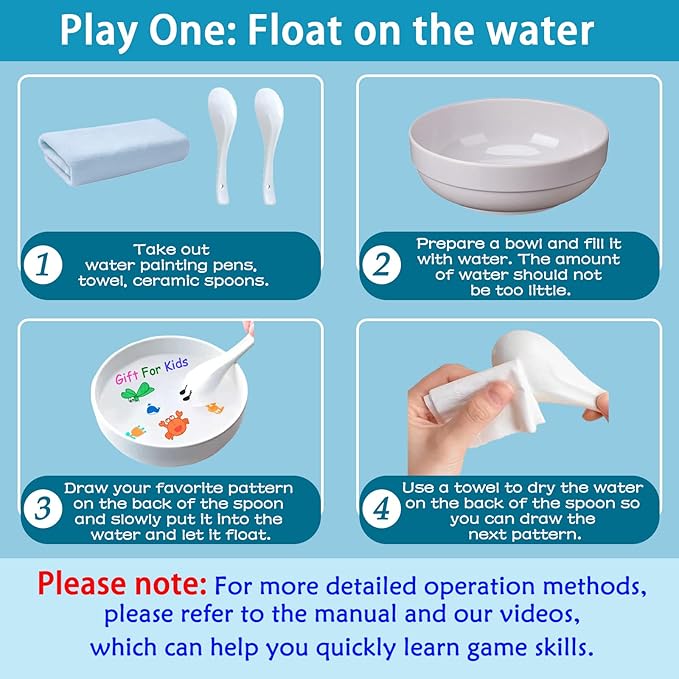 - ✅Interesting and Fun: Use this water floating pen to draw a picture on a spoon, when it encounters water, the drawn animal pattern will float in the water as if there is life, and you can stick it on your hand to make a simple tattoo. DIY drawing attracts children's attention and curiosity and cultivates children's patience. Mom, dad, and children can participate in paintings together, and parent-child interaction experience handmade fun!